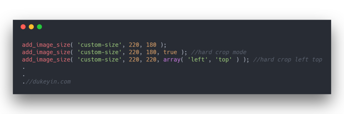 add_image_size( 'custom-size', 220, 220, array( 'left', 'top' ) ); //hard crop left top