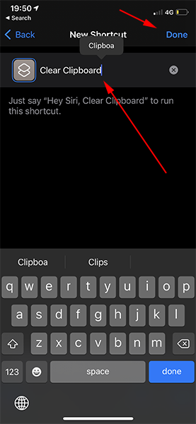 这里我把名字改成了“ Clear Clipboard”,点击done(完成)