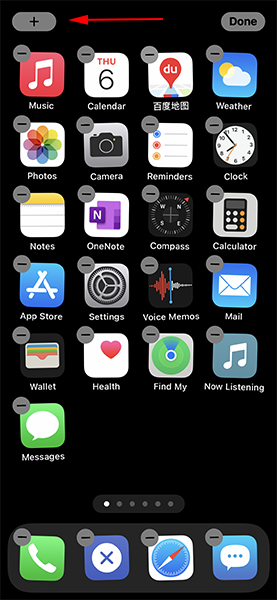 这时候返回Home screen,长按任意app图标进入编辑模式,点击左上角的“+”,添加一个Widget。