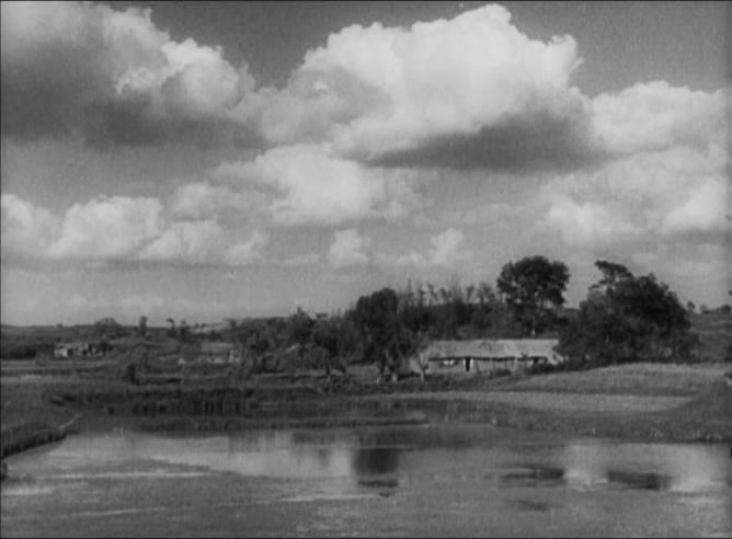 镜头从自然景观后移,从破败的窗口进了王龙家(说明其家境贫寒),然后摇向我们的主角