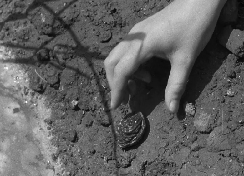 王龙随手扔掉桃核,而阿兰却小心翼翼地捡了起来: