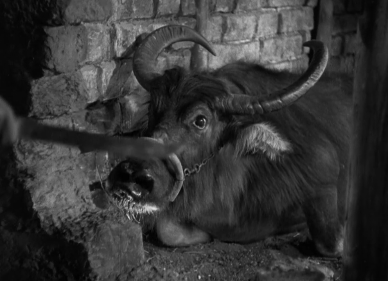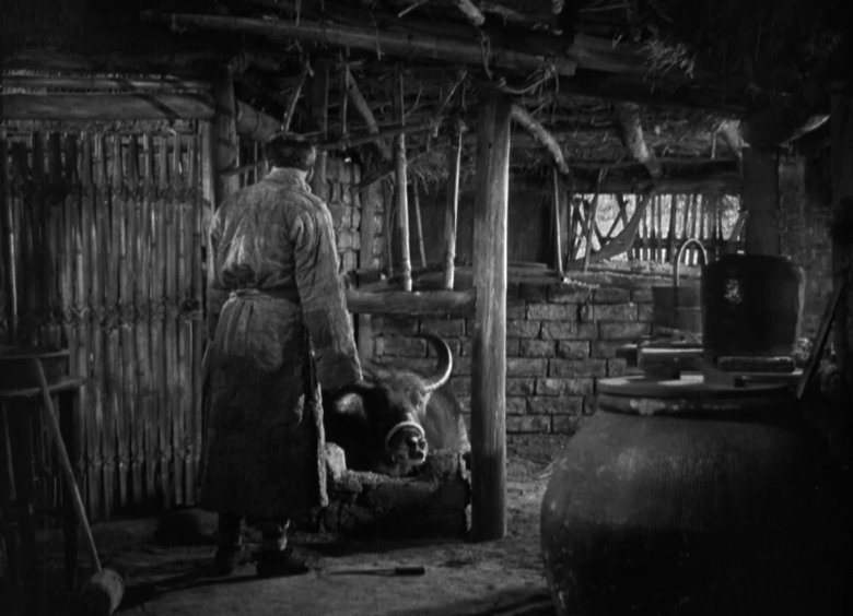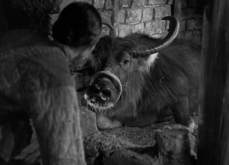 饥荒来临,不肯卖土地的王龙面对挨饿的家人,不得已只能决定杀牛取肉,但是面对跟随自己多年为这个家立下汗马功劳的老牛,王龙下不去手: