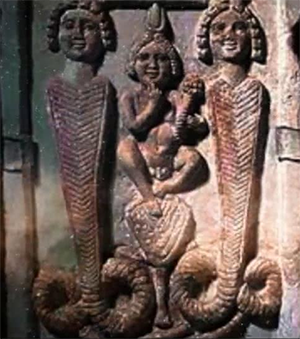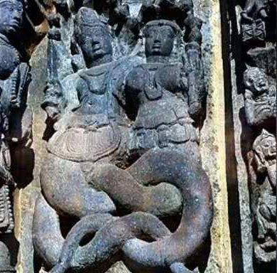 印度神话里,两个神叫纳迦和纳吉,二人也是夫妻,《摩柯婆罗多》记载纳迦和纳吉是半人半蛇的生物,也出现了交尾的雕像。