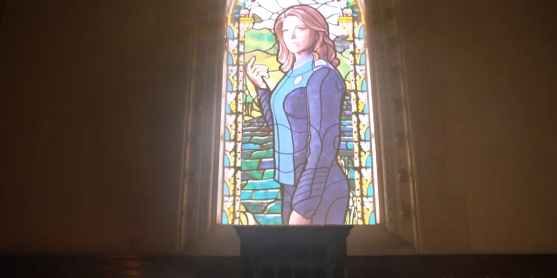 教堂的彩色玻璃,拼出的是凯莉的形象