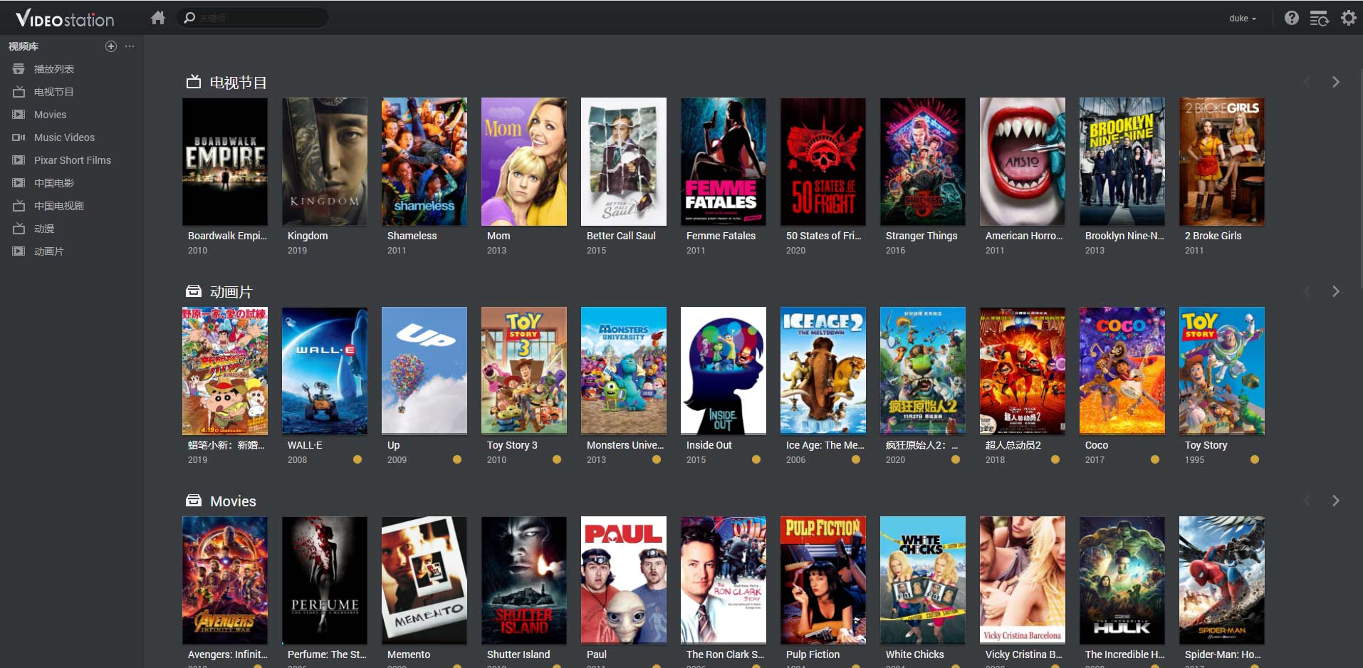 群晖NAS干这个是好手,你所需要的只是安装套件,建立媒体库,把视频文件丢进去,套件会自动给你整理: