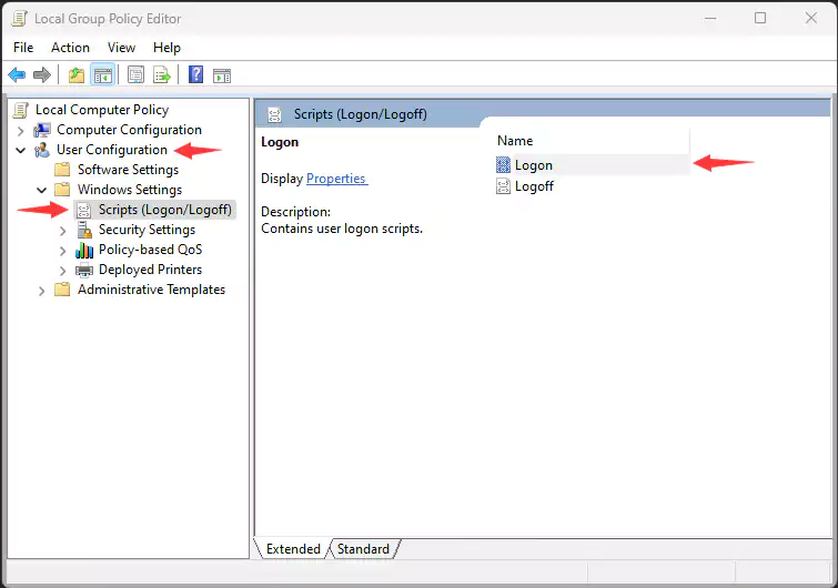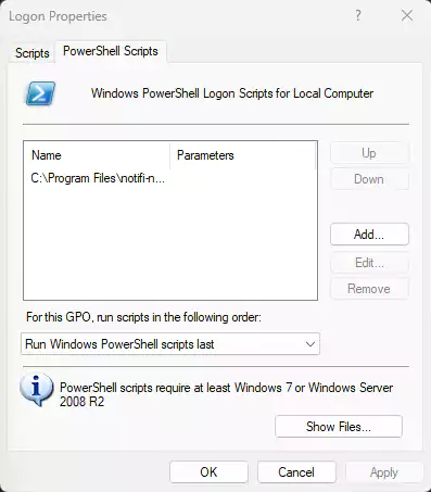如果不成功,检查.ps1脚本文件是否放置在默认的位置,即:C:\Windows\System32\GroupPolicy\User\Scripts\Logon
